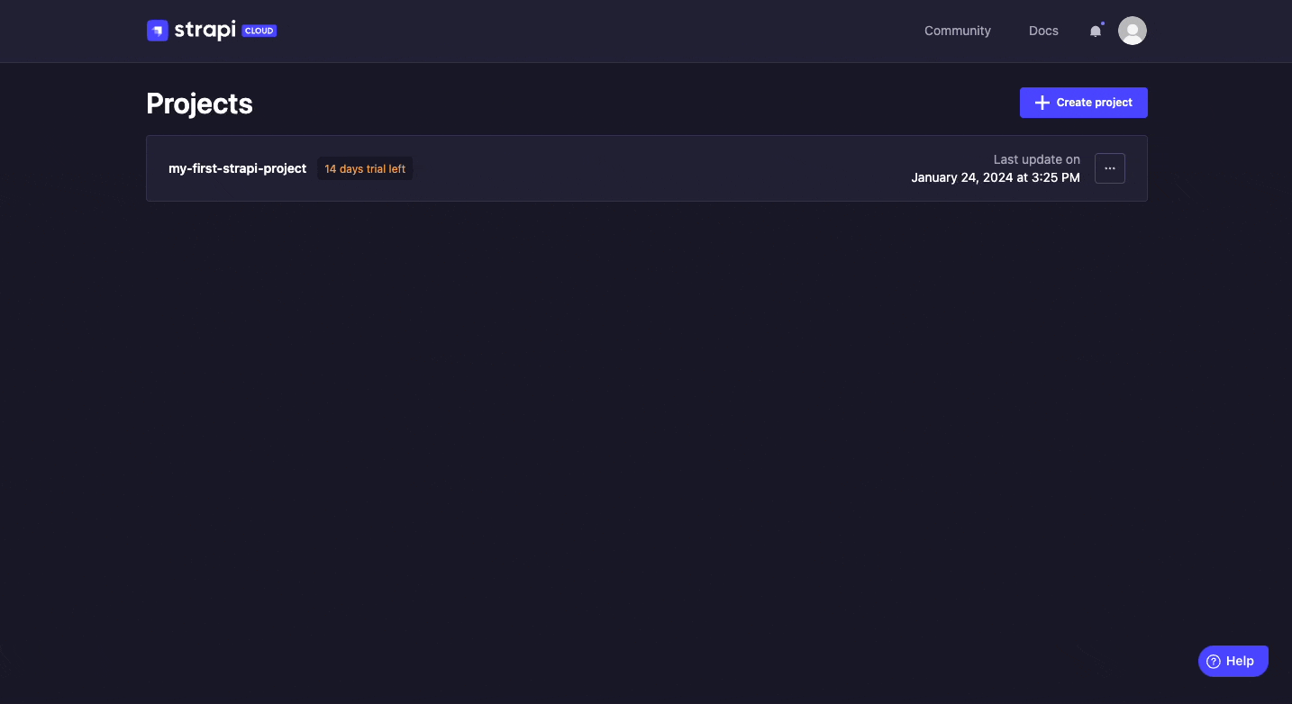 1. From your Strapi Cloud dashboard, click the my-strapi-project project.